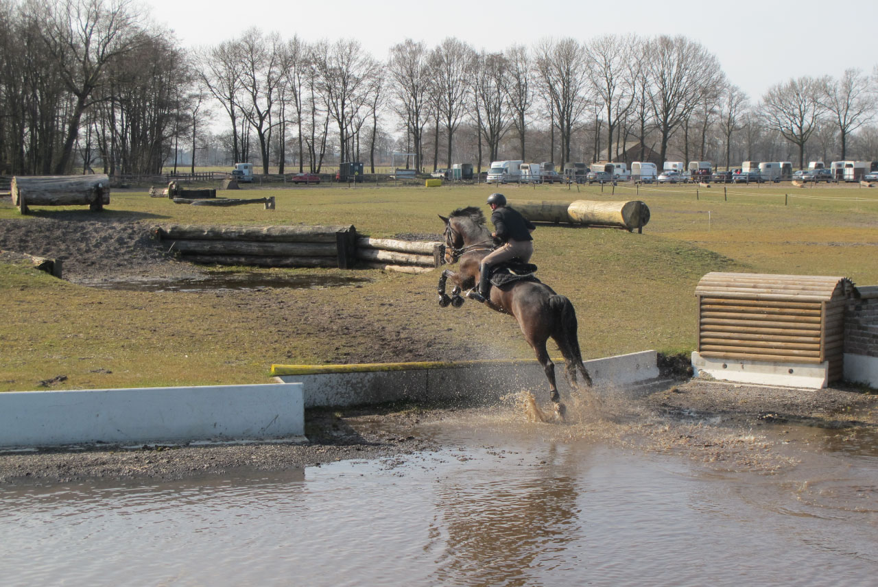 Zhir, destijds een 8-jarige zadelmakke Rhodium x Jonker. Ik beschouw het als een enorm cadeau dat dit paard op mijn pad is gekomen. Toen ik hem kocht was mijn doel om ZZL te rijden. Het pakte anders uit. Naast dressuur, cross ik met hem. Sinds Boviet, heb ik de smaak te pakken en vind het heerlijk om af en toe een BB-cross te rijden of een crossles te volgen.